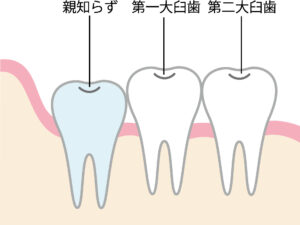 親知らずは、歯科用語では第3大臼歯(だいさんだいきゅうし)、または智歯(ちし)と呼ばれます。